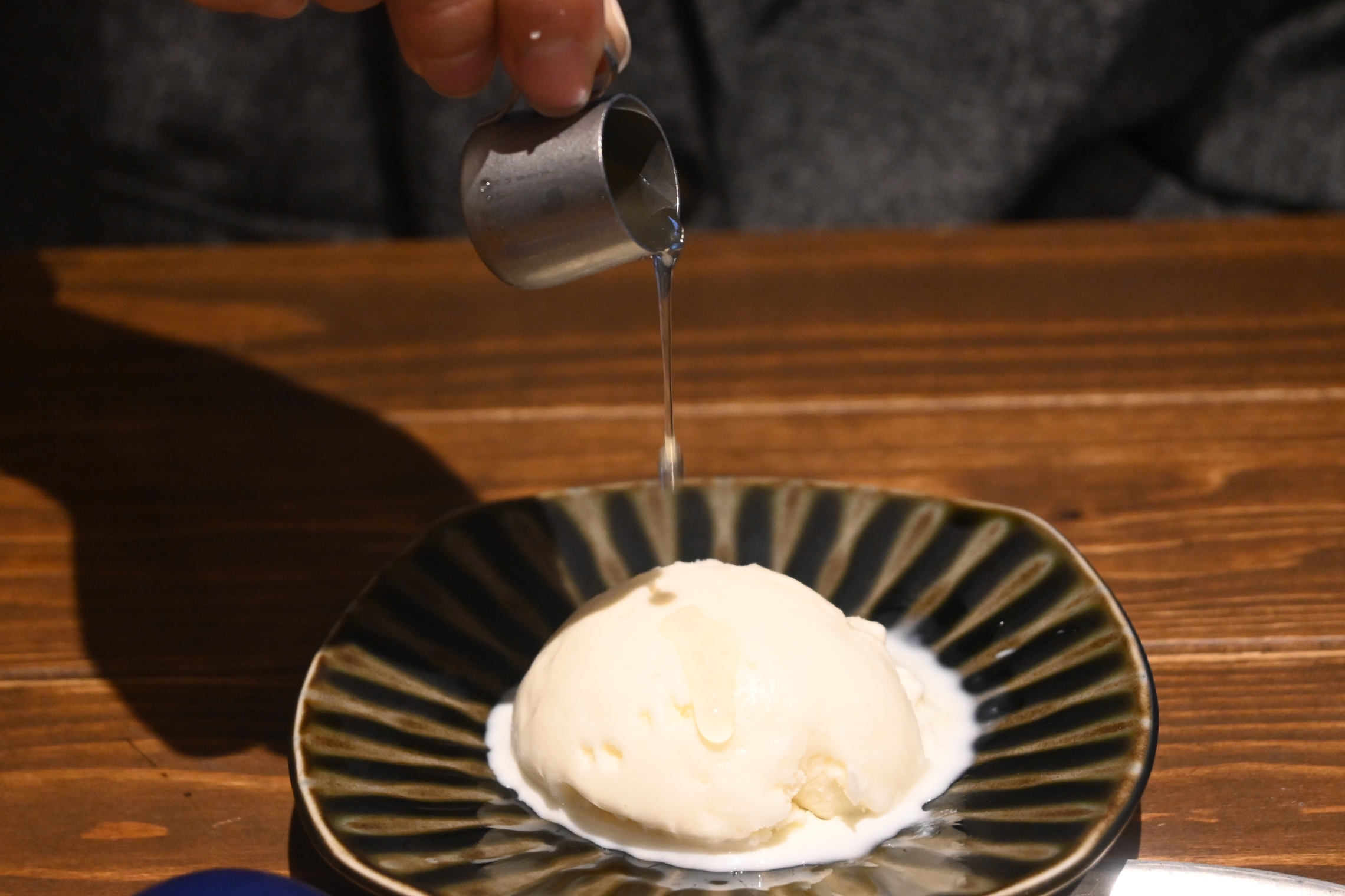 カルダモンシロップをかけると、いつものバニラアイスがワンランクアップした味わいに。