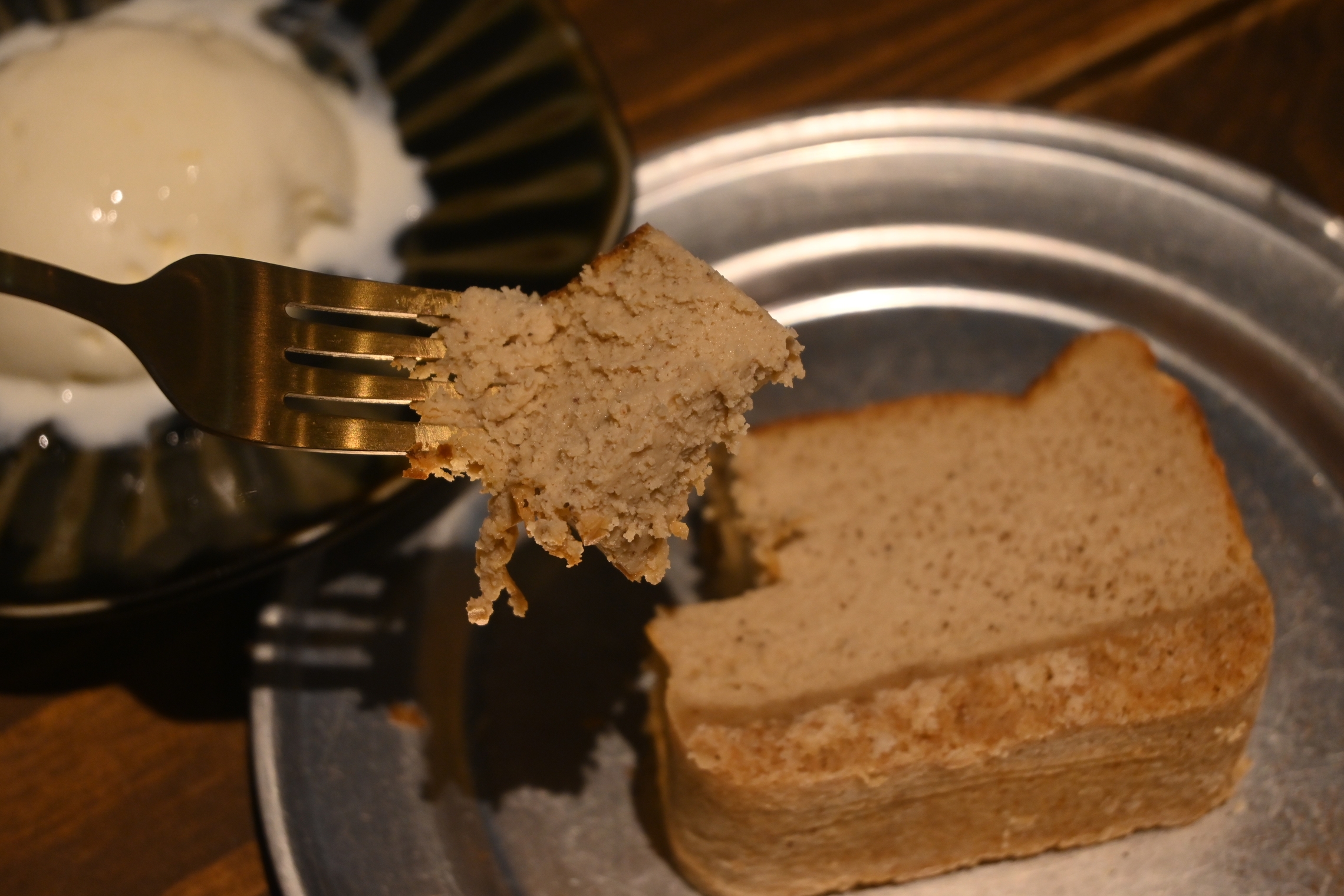 バニラアイスのカルダモンシロップがけと、チャイとホワイトチョコのチーズケーキを注文。