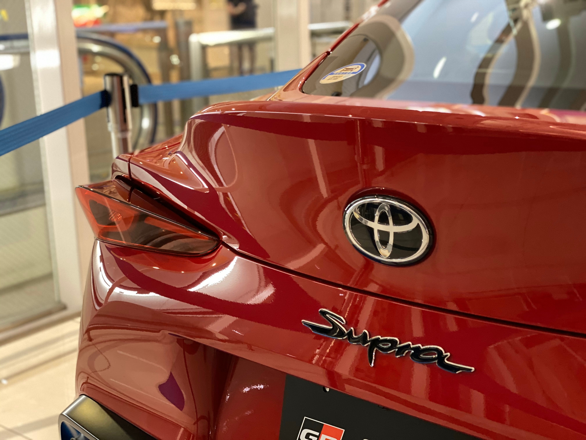 約1ヶ月間、展示しております。真っ赤なスープラの写真をSNSにアップするもよし、思う存分眺めて頂くのもよし、お気軽にお楽しみください( •̀ω •́ゞ)♡