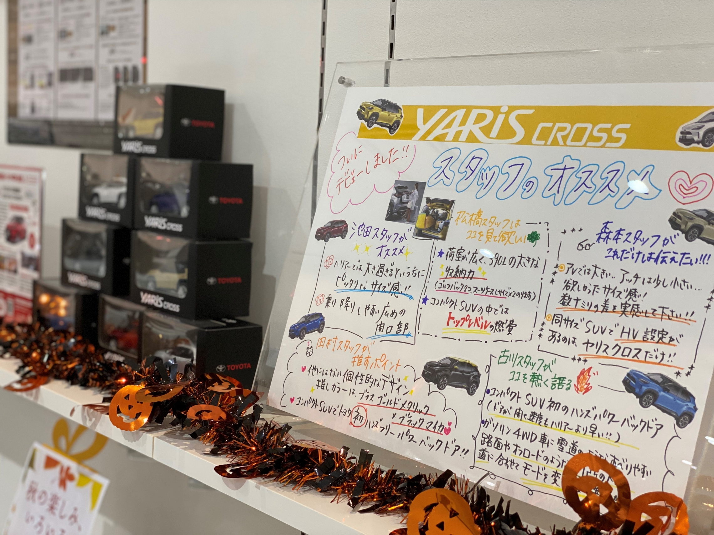 スタッフによる新型車のおすすめポイントを紹介していたり・・・