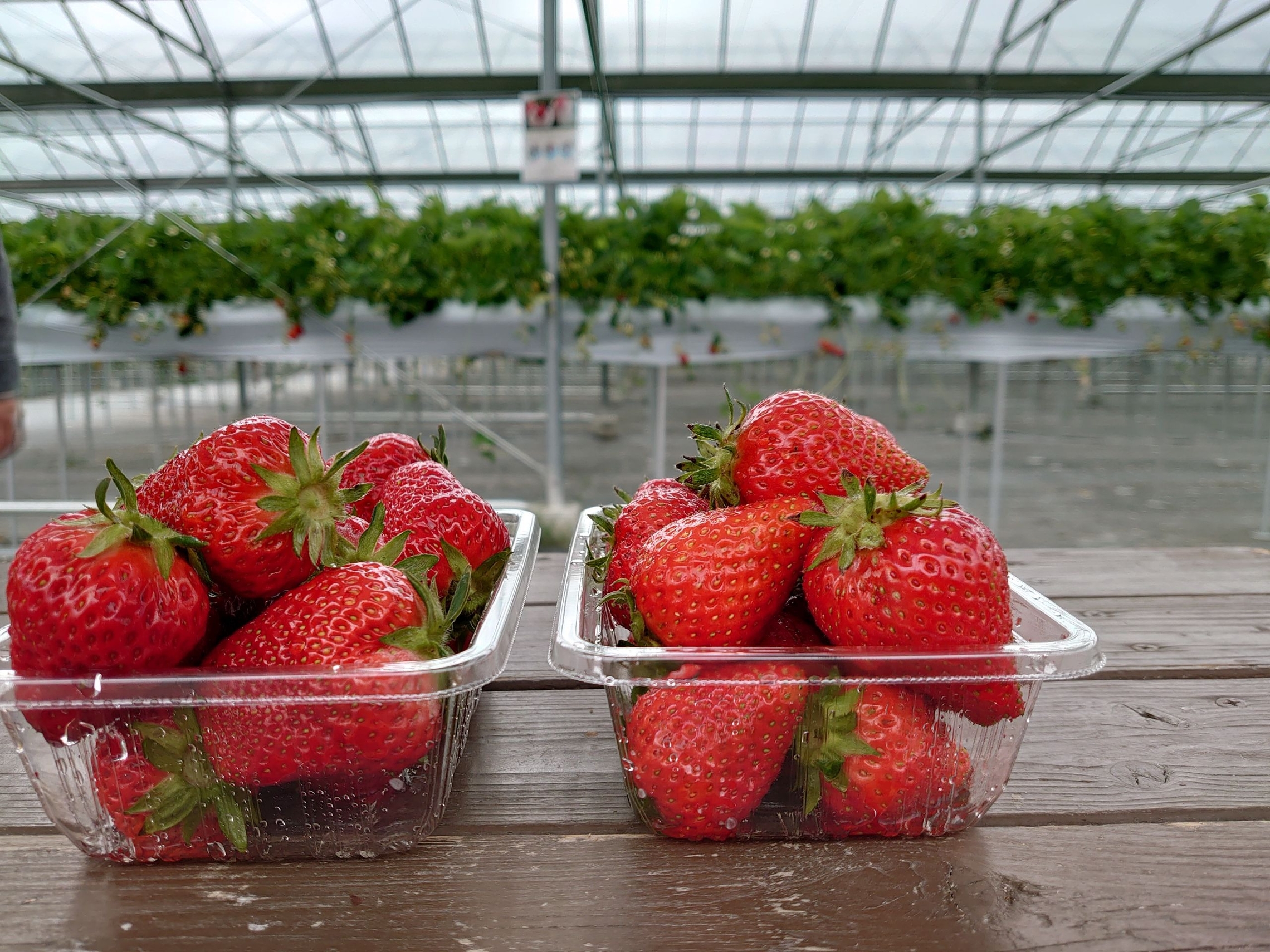行った日は、2種類のいちごを摘んで数えきれないほど食べて、お土産にいちごを買ってきました。