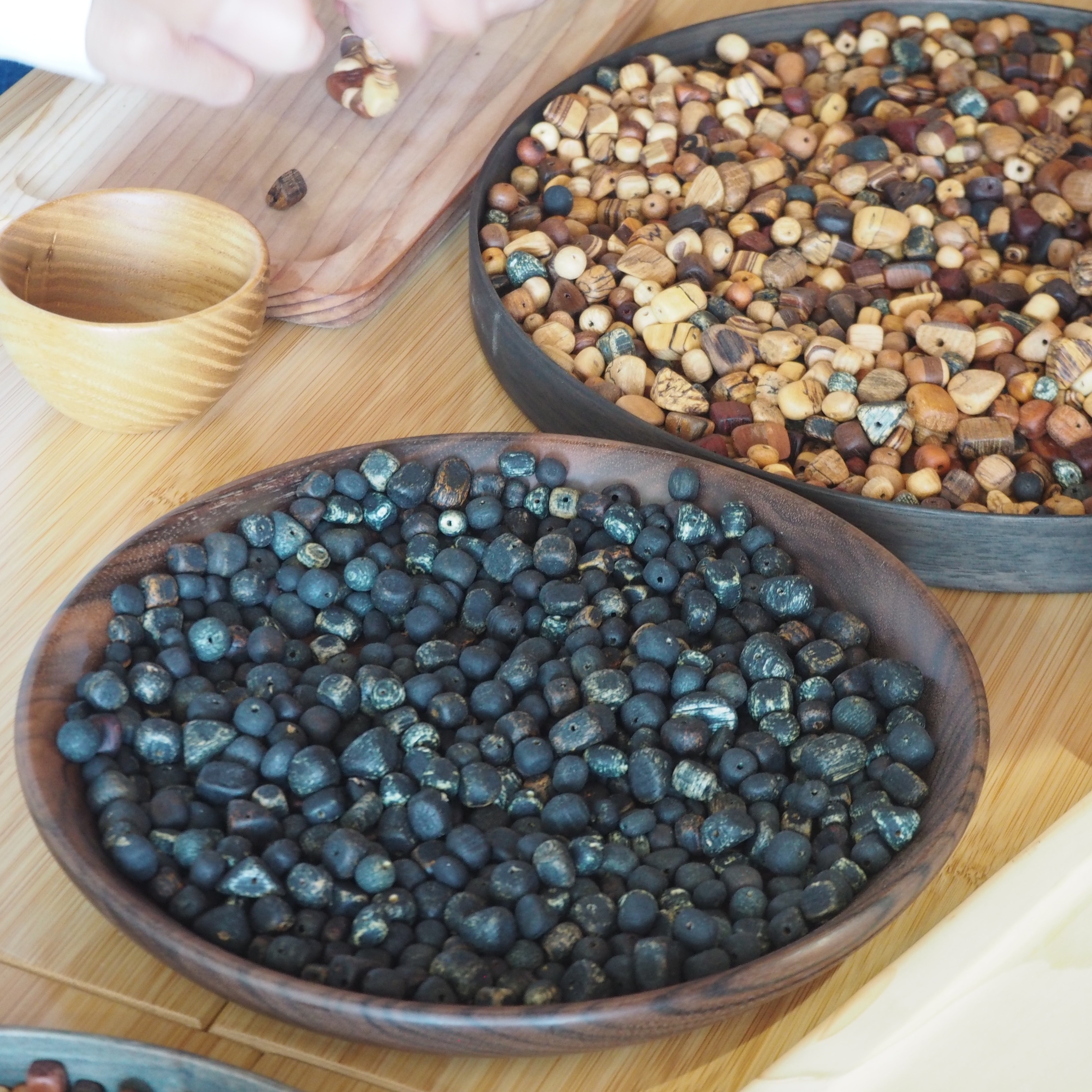 木目の個性的な部分を厳選し、ツキ板を貼り合わせて加工されたオリジナルビーズを選んで作っていきます📢